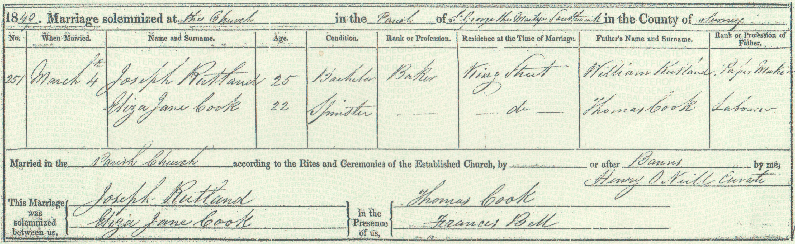 1827 in Camberwell, and daughter of Labourer, Thomas Cook) at St George the