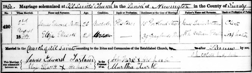 at All Saints Church, Newington, Surrey. Their marriage certificate reveals