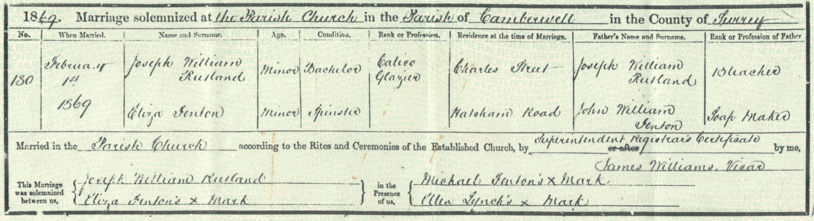 1869 at 11 Stockwell Street, Old Kent Road. It is not known whether the couple