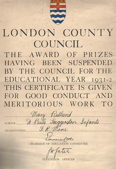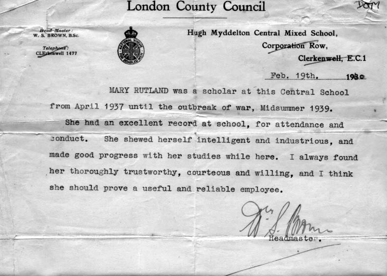Mary Joan Rutland was born on October 19, 1925 at 105 Mansfield Street, Haggerston, Hackney, London.