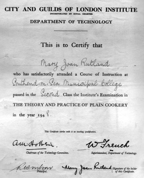 "Dad (Joseph Rutland) always used to sit on his windowsill in Weymouth Terrace to see Mum (Mary Ellen Barnett) coming from Mansfield Street passing his house. A lot of teenagers would meet outside 105 Mansfield Street (home of Mary Ellen Barnett). Shortly after I (Mary Joan Rutland) was born, Nan & 'Pots' (Sidney Frederick Barnett & Mary (Green) Barnett) took on a lease of 122 Brougham Road and we all moved there. Nan & Pots downstairs and Mum & Dad upstairs. We had a nice garden; I think Dad (Joseph Rutland) always did the gardening. I remember 'Pots' killing the chickens we had and they would run all around the garden with their heads chopped off! I think that's where I got my phobia about birds. When I was 4 I went to a Church School in Brougham Road. The Head Mistress' name was Mrs Moore and my teacher was Miss Porter. When I was 11 I went to a Church School in Pownall Road where I passed my 11+ exam. The Head Mistress' name was Miss Grimwade and my teacher was Miss White. As I had poor eyesight, they were going to send me to an ordinary elementary school but Mum (Mary Ellen Barnett) 'moved Heaven and Earth' to get me into a central school. (They called them 'Central Schools' in London, but they were really Grammar Schools). Mum even went up to County Hall. Eventually, she got me into the class for short-sighted children at Hugh Myddelton Central School. That was in Clerkenwell and I had to go on a tram to get there, and later a bus. (My friends) Ruth Foster - from Stamford Hill, Daphne - from Elephant & Castle & Helen Pinsker - from Audley Road, were in this class, and a lot more children whose names I cannot remember. Mum worked in a factory making clothes with sewing-machines. Dad used to work for his Father who had a furniture factory and shop. I always called his Father 'Uncle Dick' and his Mother, 'Grandma'. His Mother's (Maiden) name was 'O'Brien' and his Father, 'Rutland'. Dad would drive a van (they didn't have driving tests in those days), and deliver furniture to houses; and under his Father, he learned French-Polishing. He later worked in Curtain Road, just off Bishopsgate at a firm called Cohen's and stayed there during the War until he got called up for the air-force. I remember he was on fire duty one night on the roof and it was one of the worst nights of the war and he was all in (shock?) when he came back to Ashford, Middlesex. When the war had started, we went to Ilfracombe (Devon) and stayed there a week. Then we stayed in Combe-Martin for about 3 months. We had an old four-poster bed in the main bedroom and we rented a flat above the Post Office. I was 14 at the time and I went to the local school. The Head Master's name was Mr Boundy. We returned to London after that and stayed there for a week while Nan & 'Pots' went to Ashford in Middlesex to rent a place. That was No. 17, Willowbrook Road, Ashford. We all, including Dad, went to live there and Nan & 'Pots' let Aunt Florrie and Uncle Percy (Percy & Florence (Rutland) Spaul) rent the place in Brougham Road. Dad had a row with Nan & 'Pots' and having been living on the ground floor and Nan & 'Pots' upstairs, Nan & 'Pots' went to live at Stebbing Green with all of Pots' sisters. They eventually moved to Southend when the war was over, and I used to go and spend a month with them when I went to Hugh Myddelton. We all started work at 14 in those days. I went to a place in Staines to learn shorthand & typing. I got a job with an insurance firm, Norman Frizzell & Ptnrs, where I stayed for a year. Then I got a job at the local hospital, which was just 'round the corner from our house, working for the Matron. I had a lady 'over' me (Mrs Grethe), and after she left, I was working under the Doctor's wife, Mrs Moller. Eventually, my Mum, Dad, my Sister 'Sallie' and I went to live in Southend at 171 Feeches Road. 'Pots' was baptised in Eastwoodbury Church at about 70 years of age as he had never been baptised before. He eventually died in Orsett Hospital with Cancer of the bowel. |