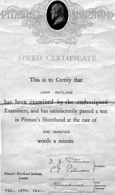 Pitman's Short Hand certificate (100 words per minute) - 1941 |