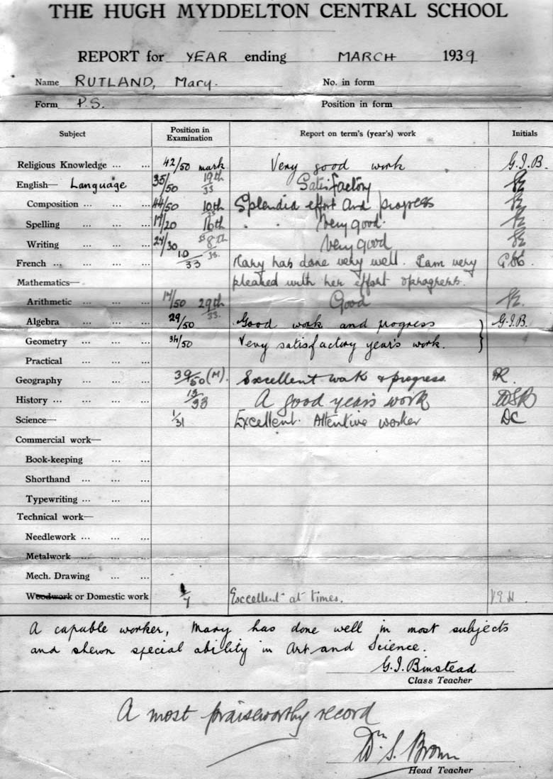 For a continuation of Mary Joan Rutland's (married) life story, see the Wilfred Dudley Charles Huskisson page.