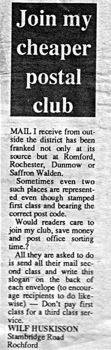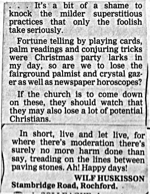A letter from Wilfred in the local 'Evening Echo' (1989) |