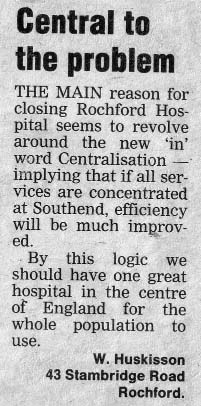 One of Wilf's many letters to the local newspaper. In this one he protests against the imminent closure of the hospital ward where he had been treated. |