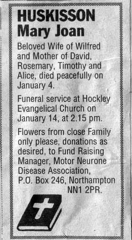 Death Notice in local newspaper |