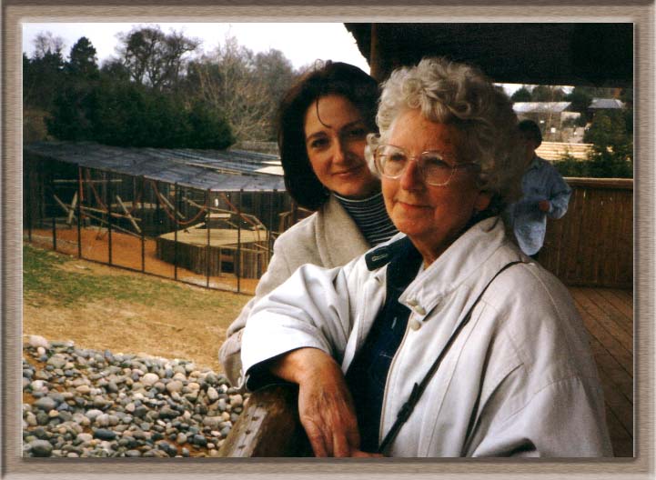 Mary with daughter, Alice at Colchester Zoo, 1996 |