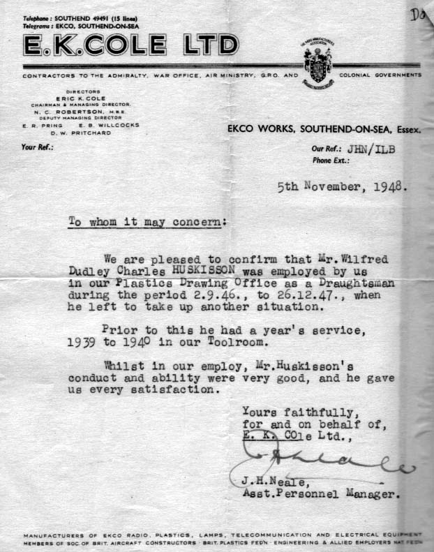 The EKCO company in Southend-On-Sea where Wilfred worked. The family had moved from Finchley to Southend in 1939 |