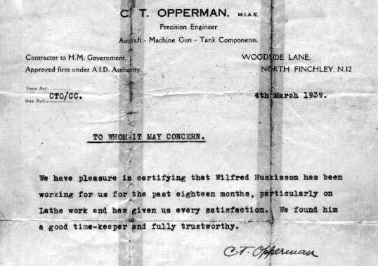 Letter of recommendation from C. T. Opperman for who's company Wilfred worked |