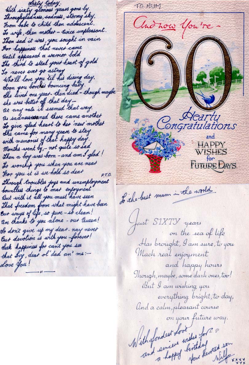 A Sixtieth birthday card complete with poem to his Mum, May |