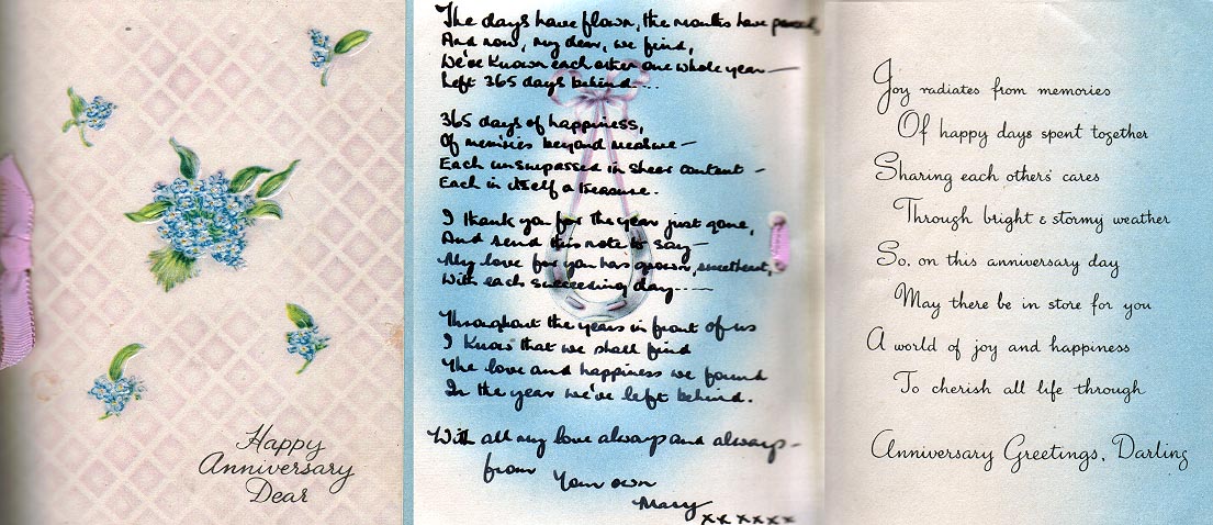 A note from Mary to 'Bill' on the 1st anniversary of their meeting |